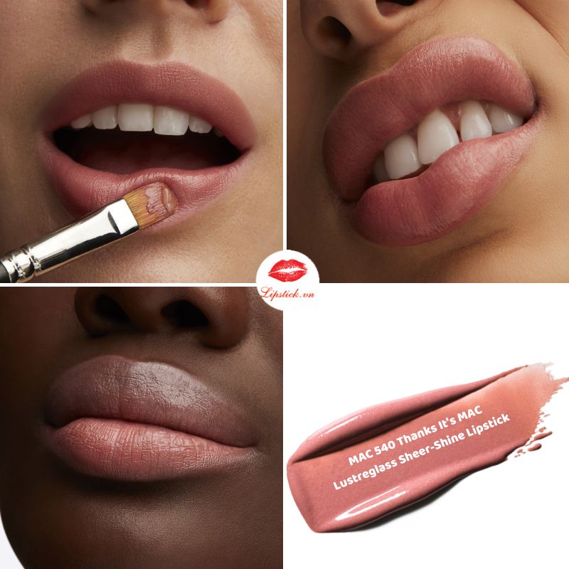 رژ لب مک شماره ۵۴۰ از سری Lustreglass ترکیبی از جلوهی رژ لب و برق لب است. بافتی سبک و نرم دارد و لبها را بهصورت طبیعی براق میکند. فرمول آن سرشار از روغنهای مغذی مانند جوجوبا، هسته تمشک، نارگیل، زیتون ارگانیک، کره شیآ و هیالورونیکاسید است که لبها را مرطوب، نرم و لطیف نگه میدارد. رنگ ۵۴۰ “Thanks, It’s MAC!” یکی از محبوبترین تناژهای طبیعی با تهرنگ گرم و زنانه است.