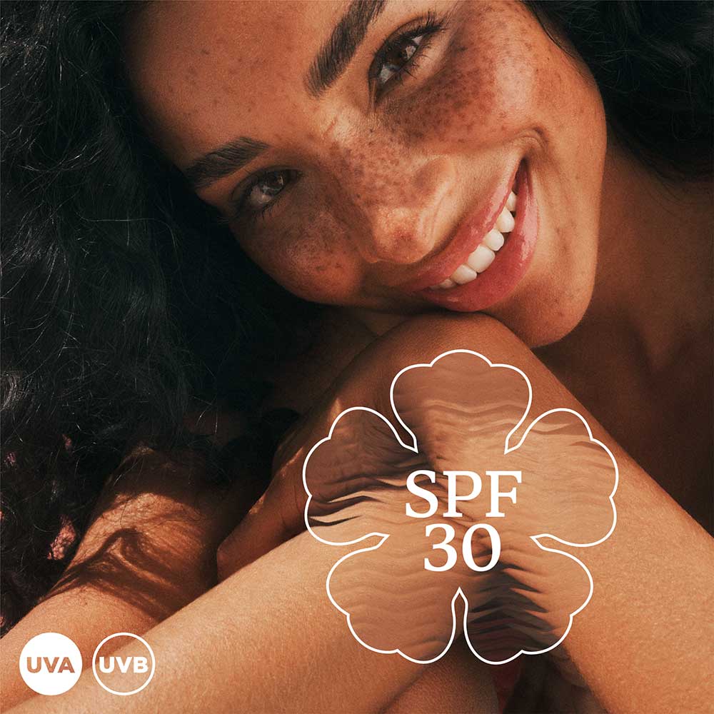 پوست لطیف صورت خود را به صورت محافظتی + مرطوب کننده رطوبت رسانی کنید. این SPF صورت که از نظر پوست آزمایش شده است، مراقبت ملایم را تضمین می کند و در عین حال محافظت بالایی در برابر اشعه UVA/UVB دارد که می تواند زیر آرایش اعمال شود. اثرات رطوبت رسانی 12 ساعته آن را از طریق نوارهای آبرسان و مواد دوستدار پوست مانند کره کاکائو احساس کنید. جذب سریع و بدون چربی، این SPF با تمام رنگ های پوست ترکیب می شود و هیچ اثر سفیدی روی پوست شما باقی نمی گذارد.