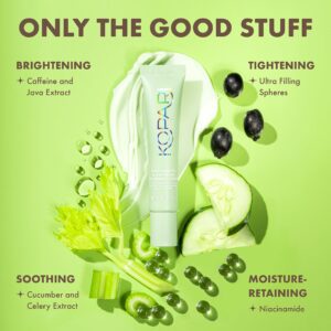 Niacinamide & Caffeine Eye Bright Cream از برند Kopari یه کرم دور چشم سبک و “روشنکننده و کاهشدهنده پف” است که با ترکیبی از نیاسینامید و کافئین طراحی شده تا ظاهراً تیرگیها را کاهش دهد، پوست اطراف چشم را آبرسانی کند و خطوط بسیار ریز را صافتر نشان دهد.